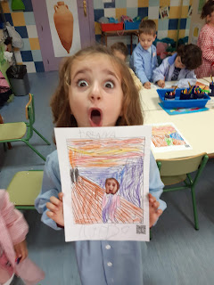 Jugamos a poner la misma cara de la figura que aparecía en el cuadro y así nos quedó...